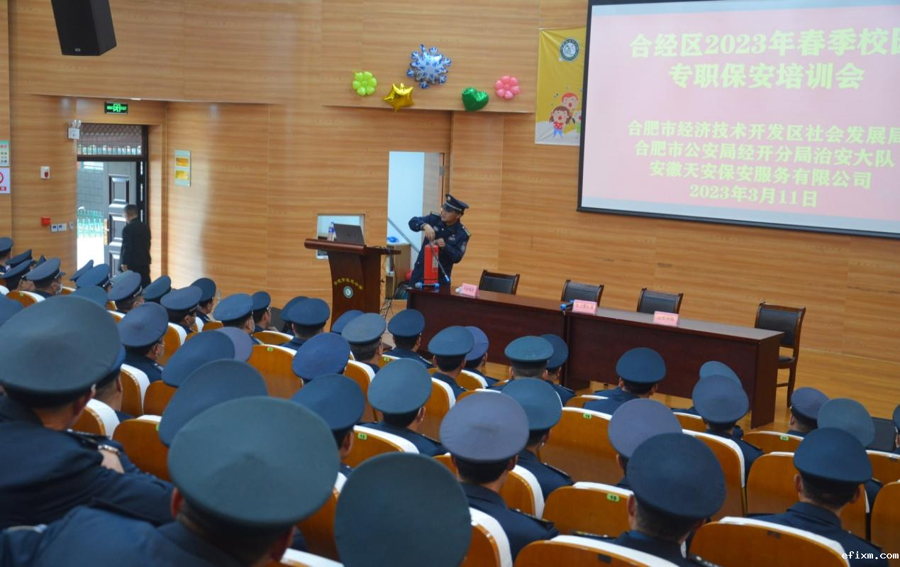 为持续加强校园安全保卫工作,更好地适应新形势下中小学、幼儿园安全防范工作需要,全面提升校园安保队伍应急处突能力,进一步向“隐患为零、事故为零”目标迈进。近日,合肥市经济技术开发区发展局、合肥市公安局经开分局治安大队,联合安徽天安保安服务有限公司开展了校园保安员安全专题培训会,全区约240名校园保安员参加培训。