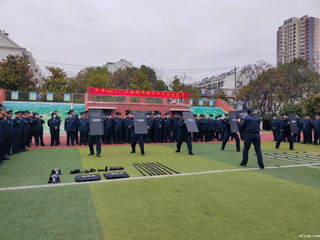 随后,公安分局战训队教官团队对校园保安员保安器械熟练使用程度和使用方法技巧进行了检查,对防暴盾牌、防暴叉、防暴棍等器械的正确使用方法进行了详细讲解与示范,并逐一进行了实操对抗演练以强化培训效果。
