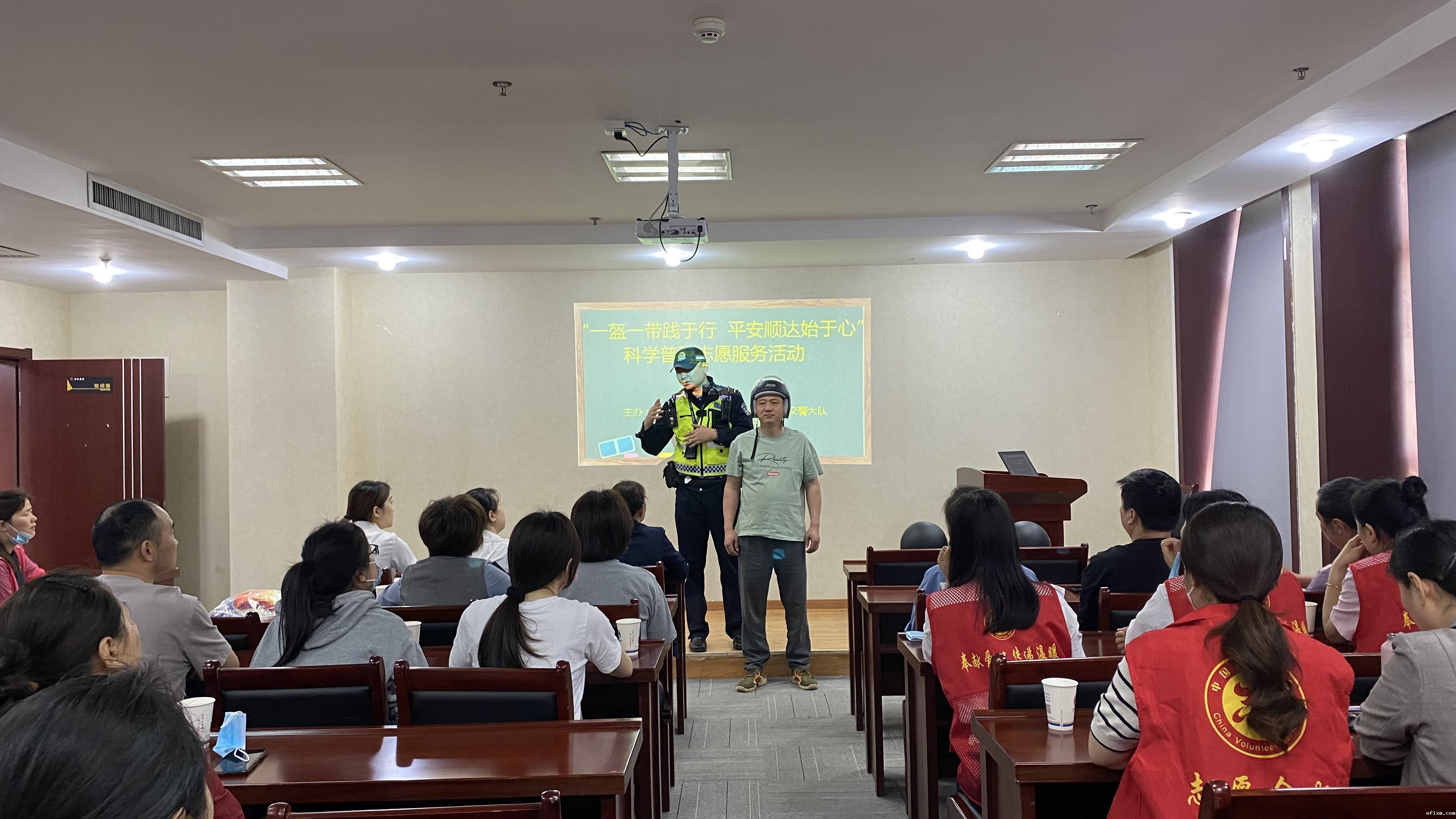 在涉及摩托车、电动自行车的交通事故中,导致死亡的最重要伤型是头部伤。据统计,中国每年的交通死亡事故中,有80%是因为没有佩戴安全头盔,导致头部受伤而死亡。由此可见,驾乘二三轮车不佩戴安全头盔是造成驾乘人员高死亡率的主要原因。为此吴警官亲自示范如何正确佩戴头盔,认真宣导出行佩戴头盔的重要性。