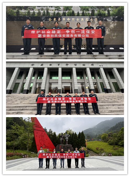 近日,为进一步深入学习贯彻党的“二十大”精神,加强党支部自身建设,强化党建引领的政治自觉,努力开创新时代、新征程上谋求保安新作为的发展构想,积极培育适应新发展格局先进保安集体的发展定位。安徽初辰保安服务有限公司党支部书记、总经理刘圣峰同志带领公司党支部成员、骨干人员专门抽出四天时间深入被誉为“红军的摇篮、将军的故乡”革命老区金寨县开展红色教育暨党建活动。