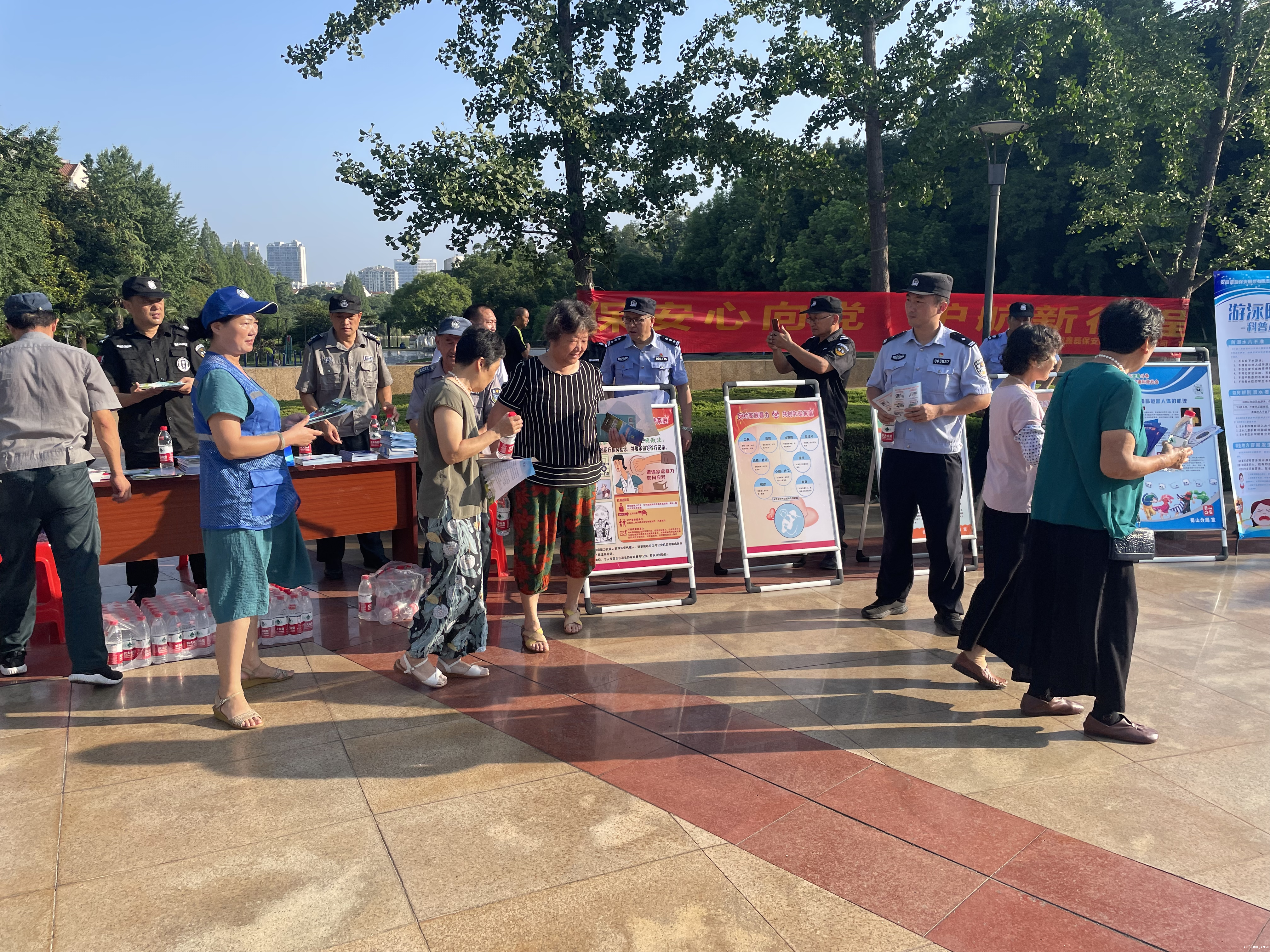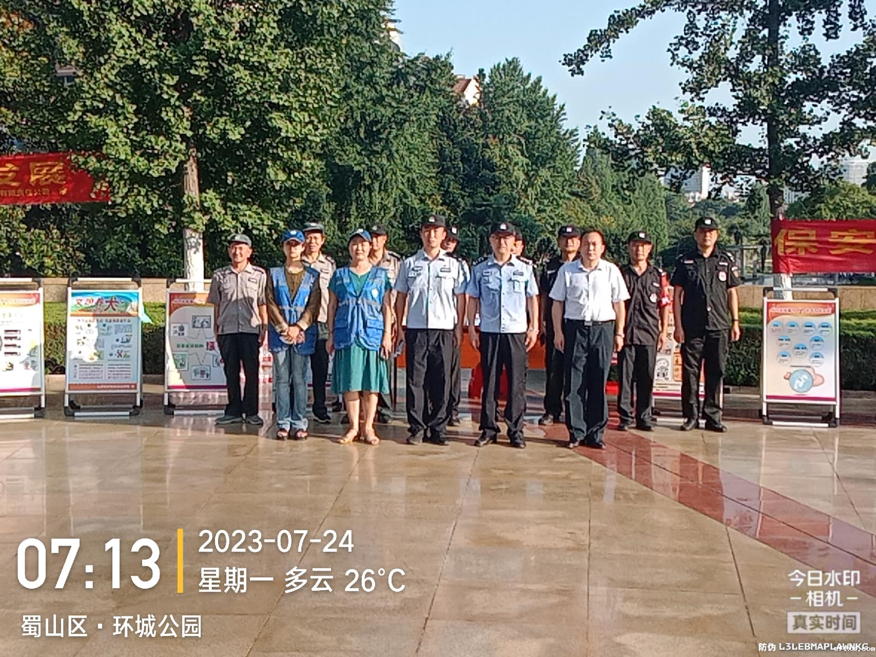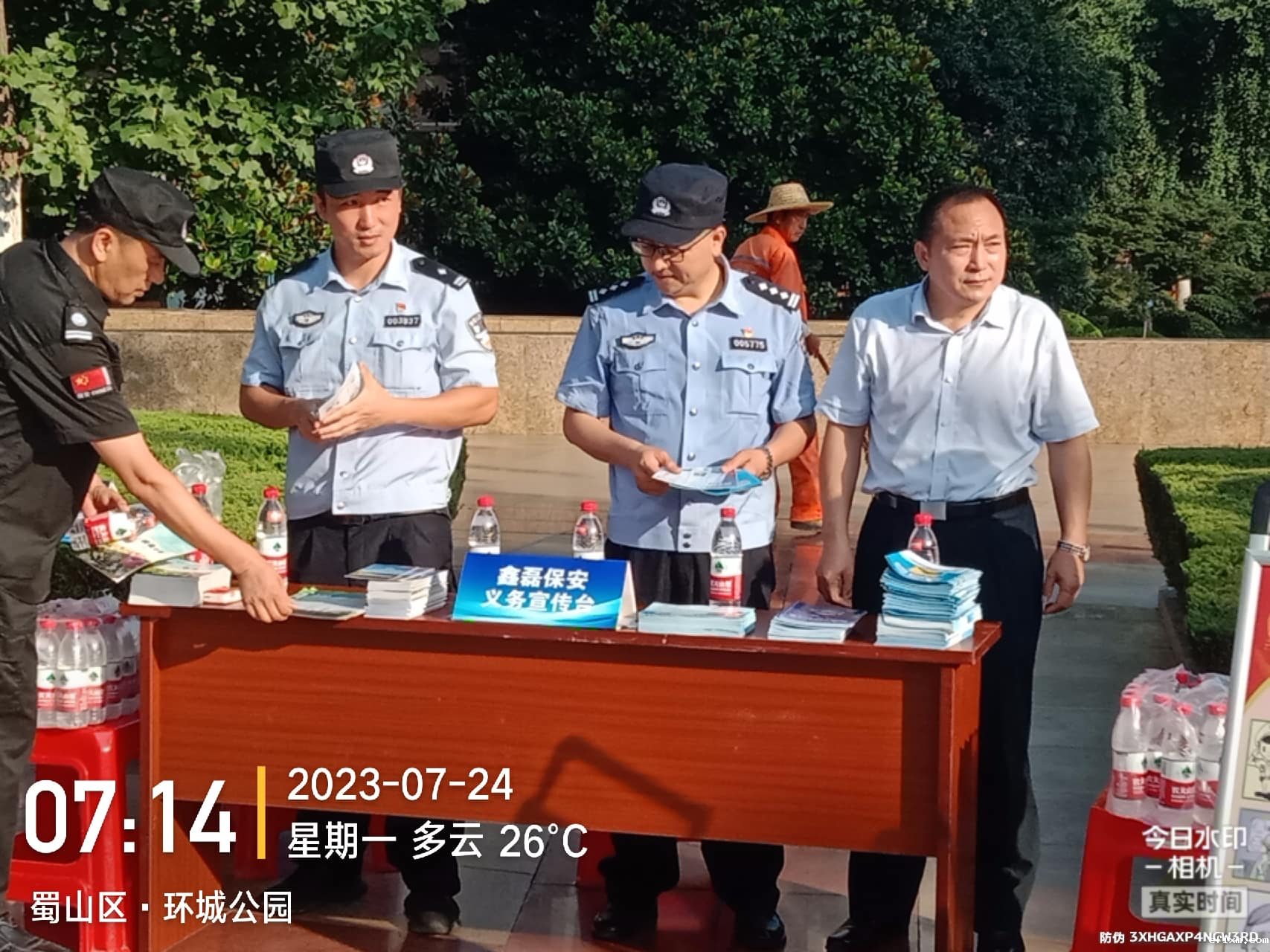 蜀山公安分局治安大队、琥珀派出所领导,带领20余名保安员和义警,在黑池坝市民广场向广大市民宣传防电诈、暑期防溺水、防雷击等基本常识和防范技能,诠释了远离赌博、拒绝毒品重大意义,现场发放宣传手册(单)2000余份,引导市民观看现场展板,免费发放鑫磊爱心矿泉水600余瓶,向300余人次市民群众详细宣传了安全防范常识。此项活动引起了在场市民的强烈反响和共鸣。蜀山公安分局和属地派出所带领保安公司开展此项活动,是公安机关和保安公司学习贯彻落实习近平新时代中国特色社会主义思想主题教育生动体现,是公安机关转变作风、一心为民、担当负责的集中展示,活动达到了预期目的。
