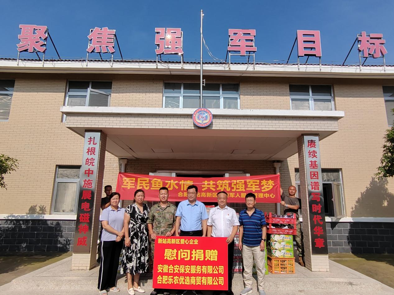 2023年8月1日下午,在庆祝中国人民解放军建军96周年之际,安徽合安保安服务有限公司在合肥市新站区社会发展局领导的率领下,与其他爱心企业一起,走进驻地部队开展“八一”建军节拥军慰问活动。总经理朱金海给驻合肥市新站区三十头社区部队官兵送去慰问品,以实际行动践行新时代爱军拥军,建军企团结鱼水情。