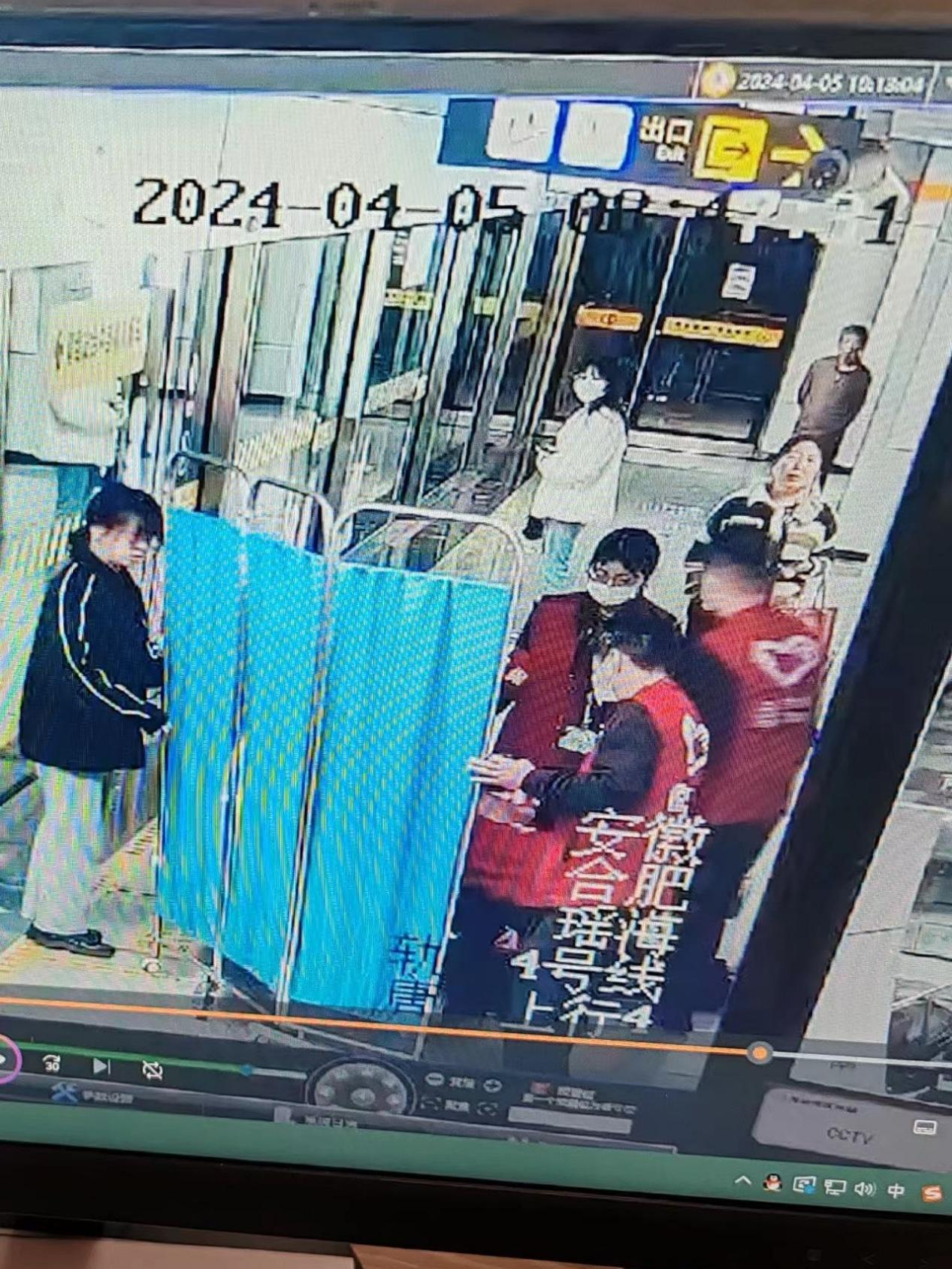 4月5日早上,唐桥站A端电扶梯上来一名乘客突然大声呼喊“不好了,不好了,有人出事了!”。登安公司安检队长徐星晨听到后立刻奔向该乘客所指的站台,看到站台A端的地上躺着一名男性乘客,意识模糊并口吐白沫。徐星晨见状立即报备车控室,同时从口袋拿出纸巾协同热心乘客塞住晕倒乘客嘴巴,防止其咬伤自己。随后车控室人员也携带医药箱赶来,并对该乘客进行心肺复苏紧急处理。在乘客逐渐苏醒后,徐星晨又去给他倒来一杯温水,陪同其直到120到来,才回到岗位上。