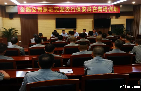 为了全面提高我公司派驻芜湖农行金库、监控、市区网点、自助机巡查保安人员执勤能力,提升保安队伍综合素质,有效防范和正确处置突发事件,8月28号下午,我公司驻点芜湖农业银行全体保安人员,在芜湖农行会议室举行了保安培训会。芜湖农行安全保卫部俞希勤、陈忠新、王健,金剑保安公司祝德安、刘远尧、黎兴林等领导参加了培训会议。