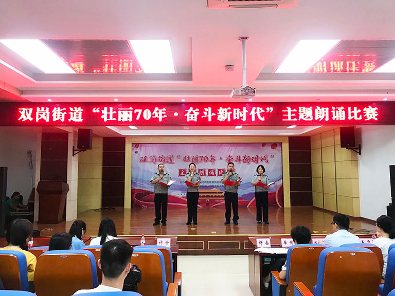 9月9日下午,由庐阳区双岗街道举办“壮丽70年·奋斗新时代”主题朗诵比赛圆满落幕。我公司代表队诵读作品《祖国与我》荣获优胜奖。