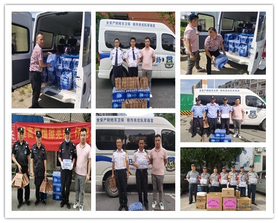 连日高温,骄阳似火。为了做好高温季节的防暑降温工作,给骄阳下依旧奋战在一线的员工送去一丝清凉,让员工感受到公司时刻心系员工的健康,近日,安徽扬军保安公司项目经理李大庆、沈伟带队奔赴项目一线,给各项目队员送去防暑降温医药箱、矿泉水、毛巾、香皂、蚊香等用品,并且把公司的关怀及问候带给每位队员。