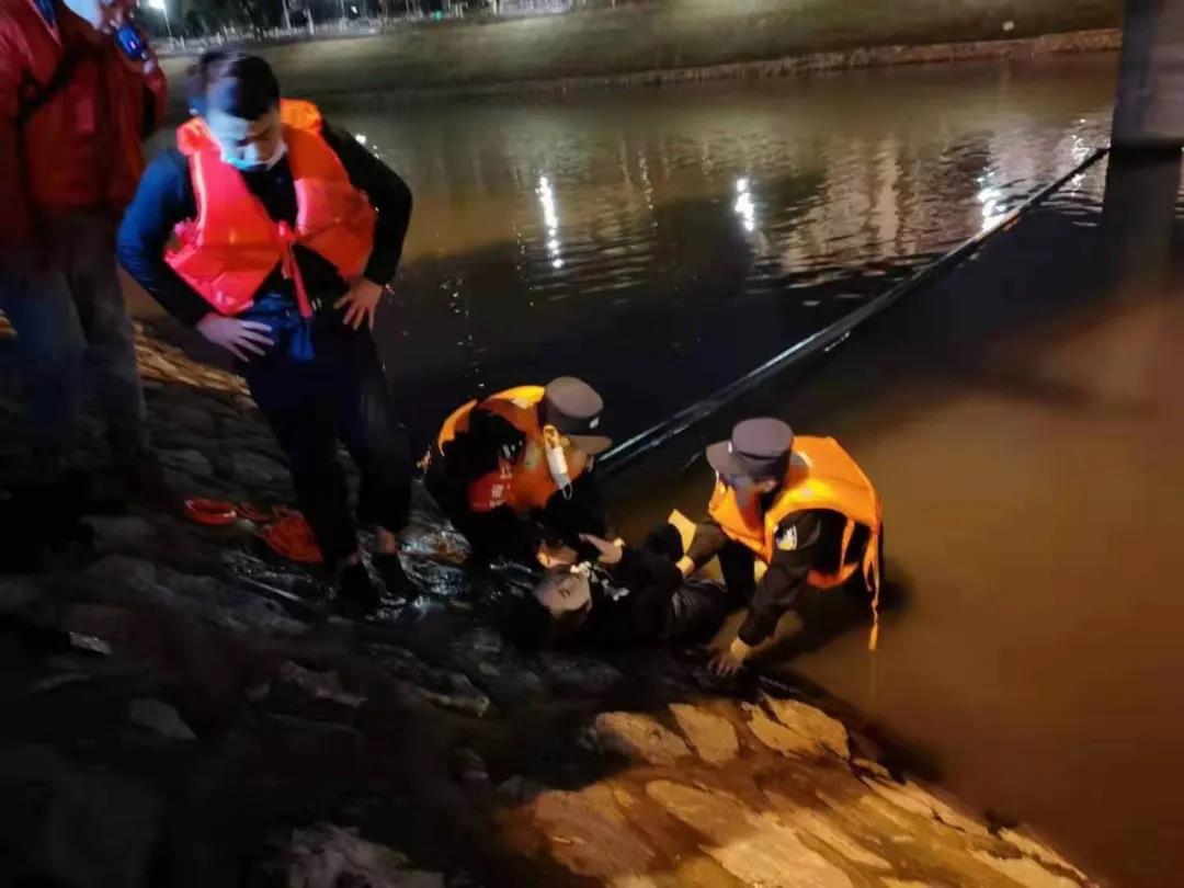 王帅和他的同事仅用了60多秒就驱车赶到了事发现场。借助手电筒的光,发现桥墩旁边落水者正趴在一截水管上面,呼救声越来越微弱了,人也已经精疲力尽了,随时可能沉入水底。见此情况,王帅和同事两人来不及脱衣服,穿上救生衣直接跳入河中。春寒料峭,河水浸透衣服,格外的冰凉刺骨,但王帅和同事两人还是用最快的速度朝落水者游去。到达落水点,王帅一边将落水者拽到怀里抱住,一边抓住救援人员给的救生绳,和大家齐心协力用了20多分钟将落水者拖向岸边,紧接着又迅速将送落水者送上了120救护车。