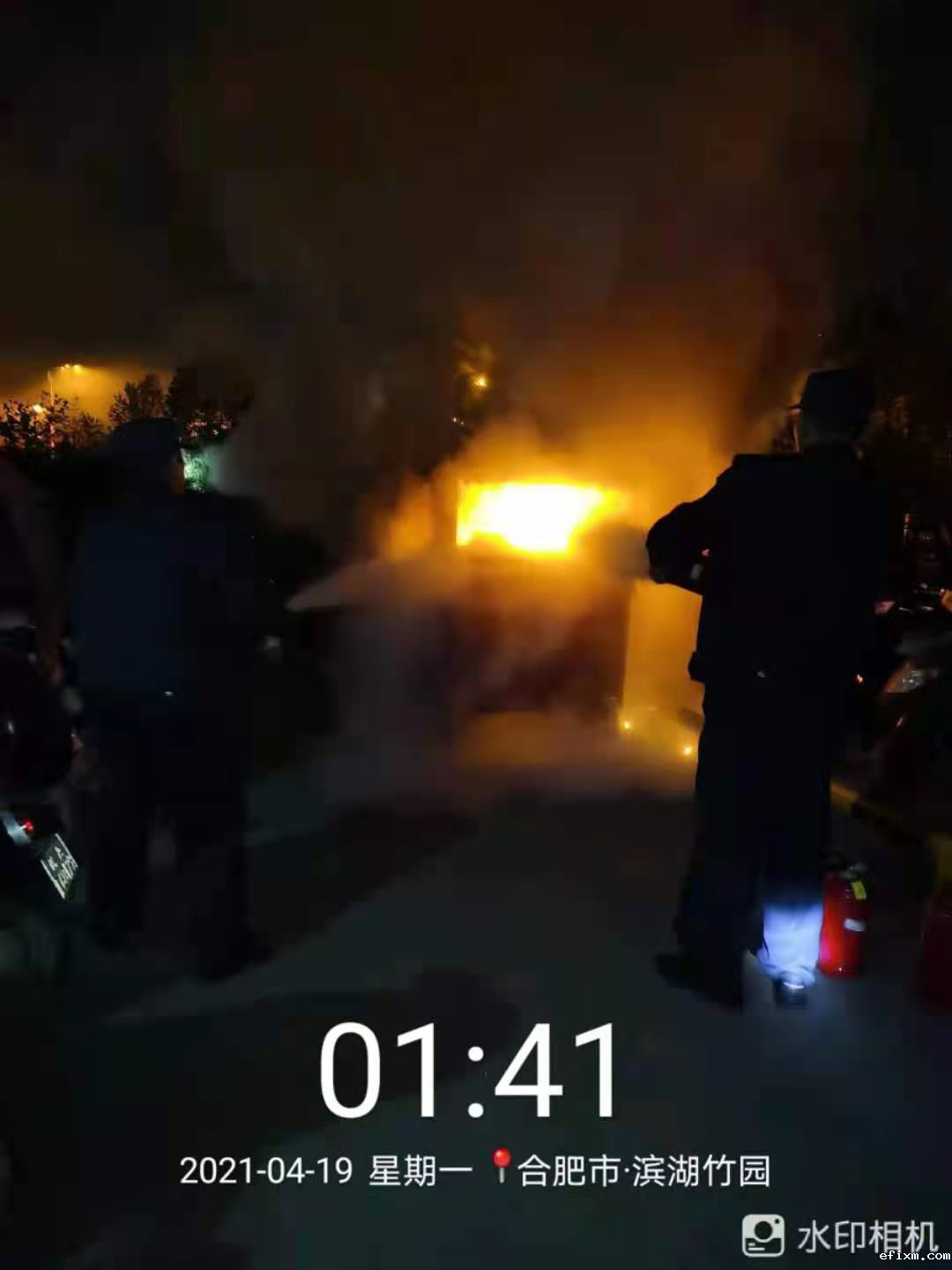 2021年4月19日凌晨1:35左右,安徽金腾保安公司滨湖竹园夜班保安队员在进行日常巡查时发现10栋西单元门口有零星火光,便立即上前查看,现场发现10栋西单元电动三轮车发生自燃,随即呼叫夜班班长王德碧并从楼道内拿出灭火器开始灭火工作,着火时,旁边还停放不少电动车,险些酿成大祸,最终在夜班班长以及队员们的共同努力下,着火点在初起火灾阶段被控制扑灭,并未造成任何人员伤亡及财产损失。