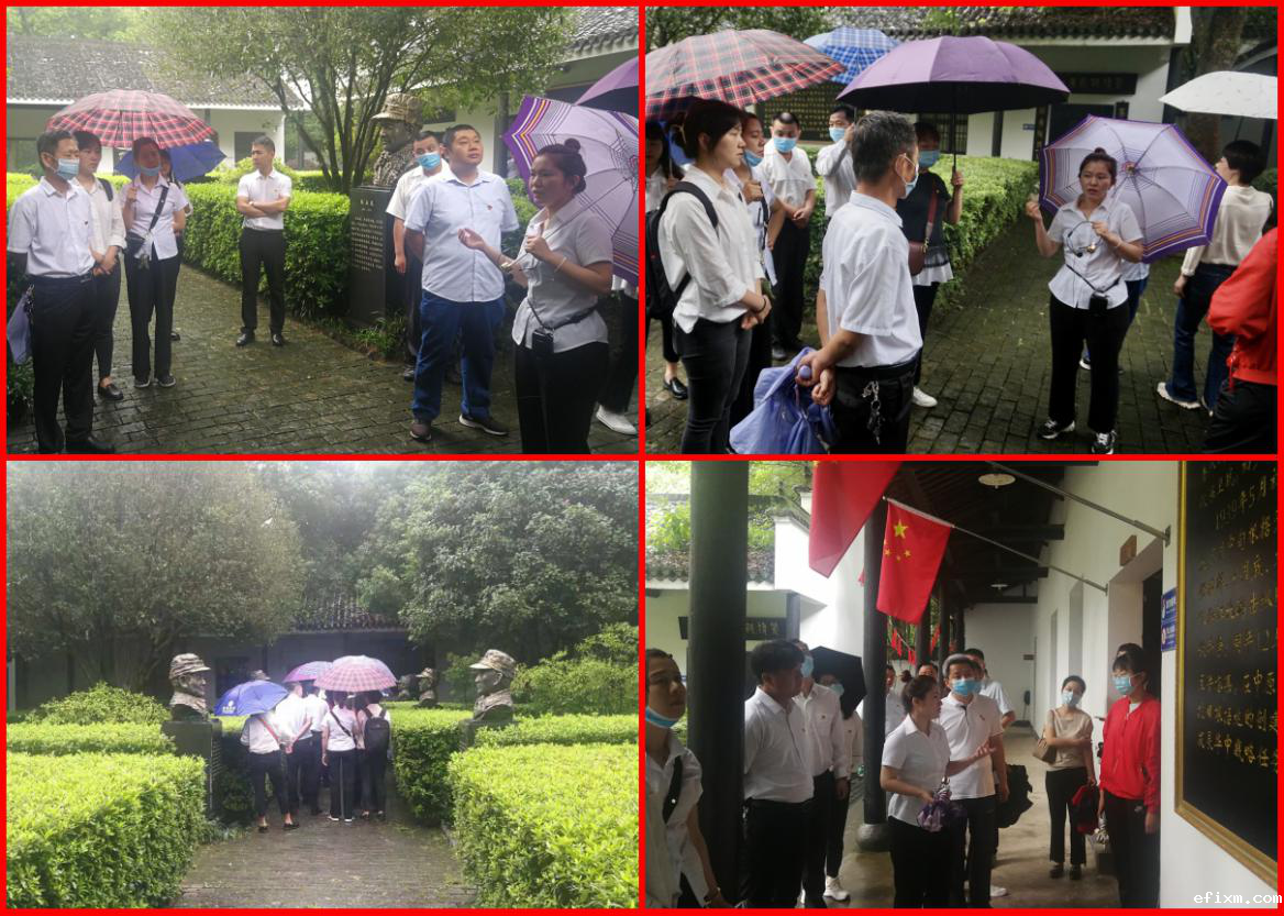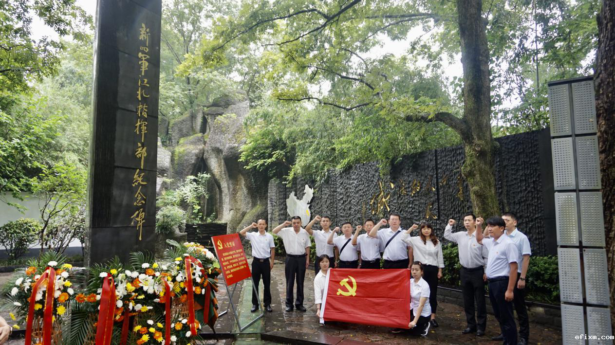 虽然天公不作美,雨点越下越大,但是大家仍然热情高涨、兴趣盎然。在新四军江北指挥部纪念碑前,大家满怀无比崇敬之情,自发整齐列队,向革命先烈默哀致敬,深情告慰革命先烈,并一起回顾了革命斗争岁月中庐江人民前仆后继、为党献身、为国捐躯的伟大历程,深刻阅读了无数革命英烈英勇奋斗、建功国家、血洒中华的生命诗篇以及“坚忍不拔、英勇果敢、一心为民、永跟党走”的新四军精神。追忆结束,在该公司李家强书记的带领下,全体党员高举右手重温入党誓词,表达了“不忘初心、牢记使命”、“坚定不移听党话、跟党走”的政治信念。
