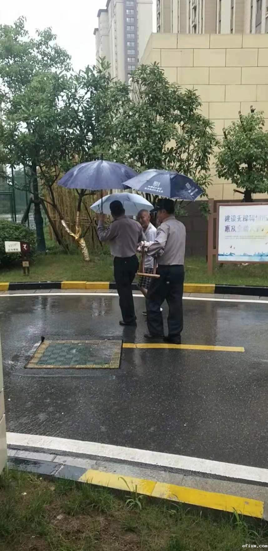7月8日13:30分突下倾盆大雨。合肥市保安协会会员单位——安徽君宁保安服务公司驻滁州某小区保安队员在对各排水口进行巡查时,发现一位大爷在大雨中不知所措。执勤保安主动上前询问,得知大爷并不清楚自己住在什么地方。后经多方打听了解,得知大爷住处并将其送至家中,交给家属。