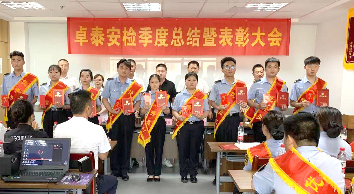 总结表彰大会现场,39名先进个人身披绶带,整齐列队就座,气氛庄重热烈。下午3时30分,大会正式开始。会上,首先宣读《卓泰安检关于表彰二季度先进个人的通报》。通报指出,二季度,各级紧紧围绕“建党百年大庆”开展工作。以最大政治热情学习好党史、以最高政治要求守卫大庆、以最佳卓泰形象展示风采。在各项勤务及日常工作中涌现出许多先进个人。为弘扬他们责任高于一切、使命高于一切的良好品质,激励全体“卓泰人”坚守初心使命、不忘责任担当,集团公司决定,对朱敬玲等39位同志获评“三优”先进个人,并在全公司予以通报表彰。