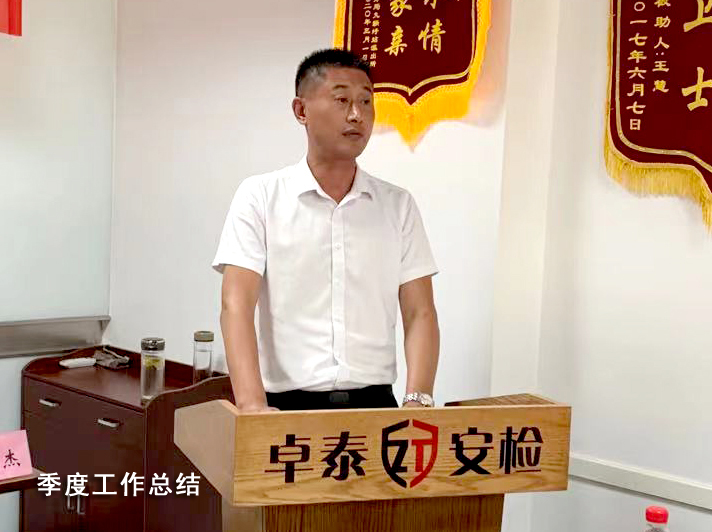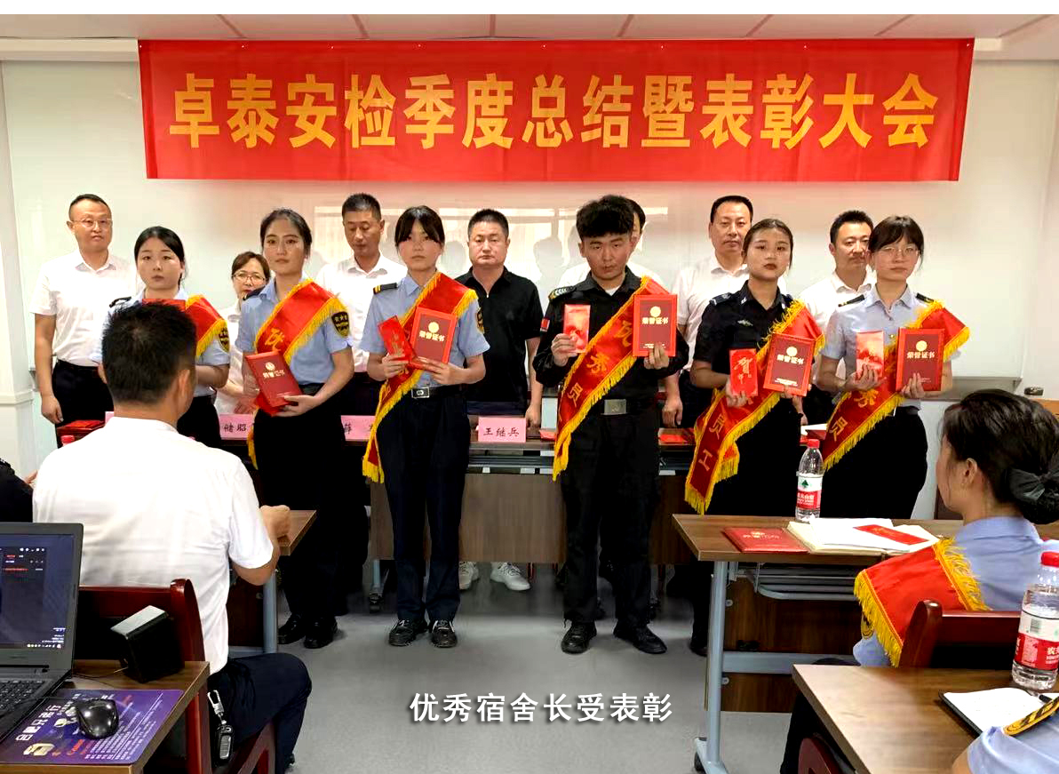 7月16日,卓泰保安公司第二季度工作总结暨“三优”(优秀管理骨干、优秀宿舍长、优秀员工)表彰大会在该公司隆重举行。该公司总经理王继兵及部门领导向先进个人颁发证书及奖金。