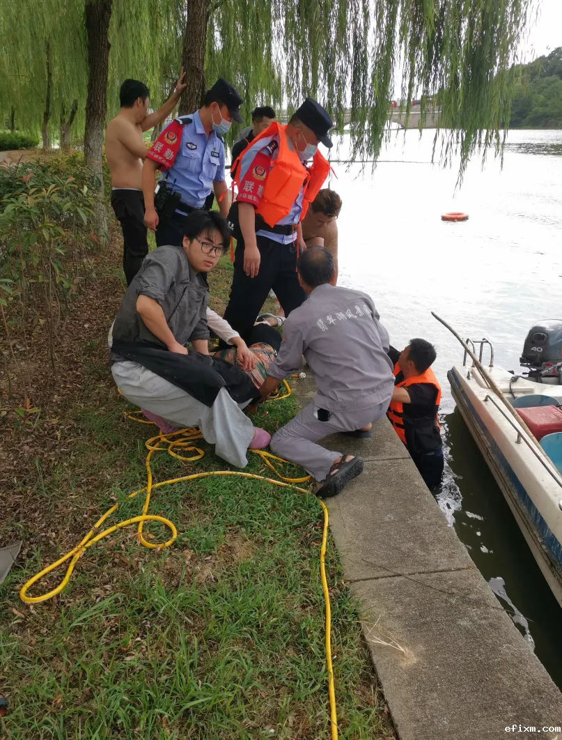 中保恒杰驻翡翠湖公园巡逻保安员发现情况后,立即向管理处报告请求支援,并拨打芙蓉派出所报警电话。管理处三分钟内驾驶冲锋舟赶到现场实施救援,翡翠湖项目负责人张宝跳入水中与茶社员工一起将跳水人员营救上岸,并立即对其进行心肺复苏急救。