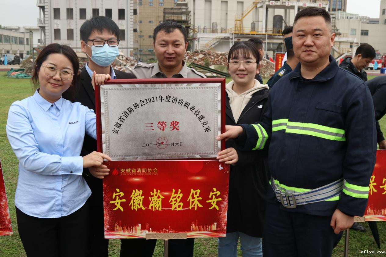 11月6日上午,由安徽省消防协会举办的2021年度全省物业与保安企业消防技能竞赛在合肥市消防救援支队训练基地隆重举行,安徽瀚铭保安公司最终以150分的优异成绩,荣获团体竞赛三等奖。