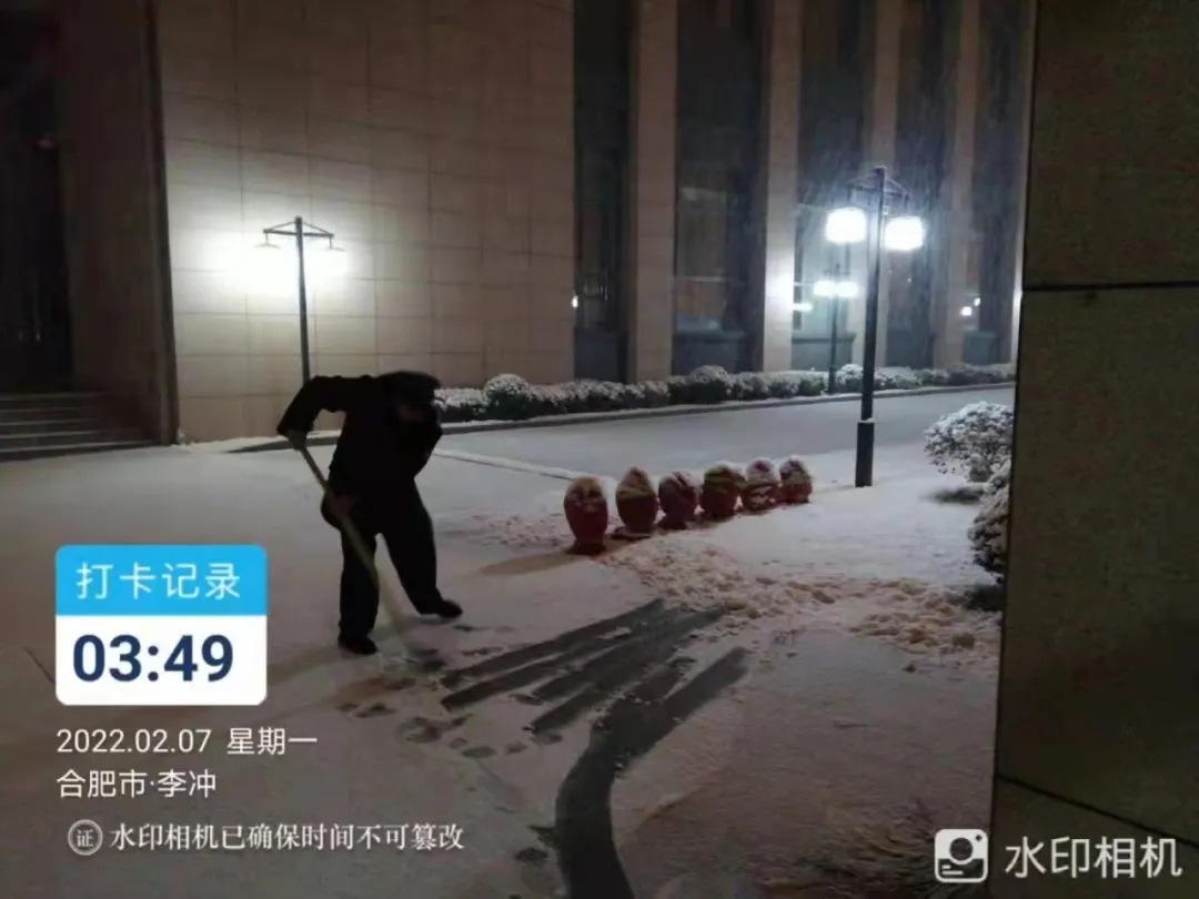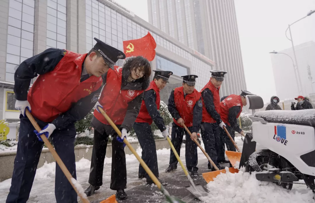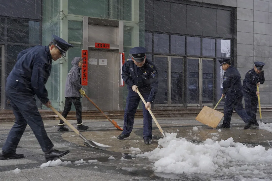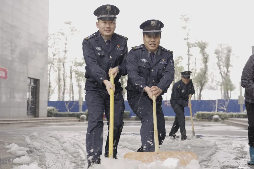 为战胜冰冻雨雪天气,确保群众安全出行,各岗位的安保执勤人员积极投入到铲雪除冰的工作中,用实际行动践行“一个支部就是一个堡垒,一名党员就是一面旗帜,一名保安就是一个标兵”的庄严承诺。