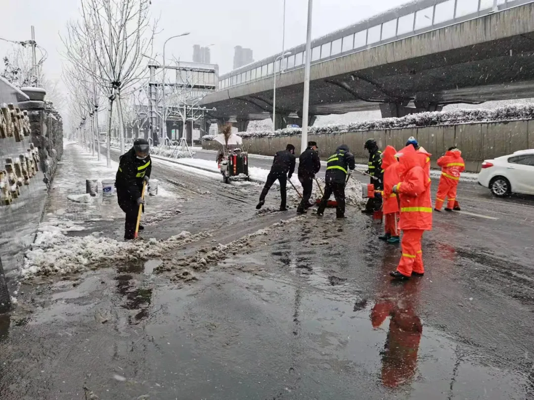 经过几个小时的艰苦劳动,地面很快褪去了厚厚的雪装,路段上的积雪基本上被清理干净,既方便了人们的出行,又温暖了人们的心灵。