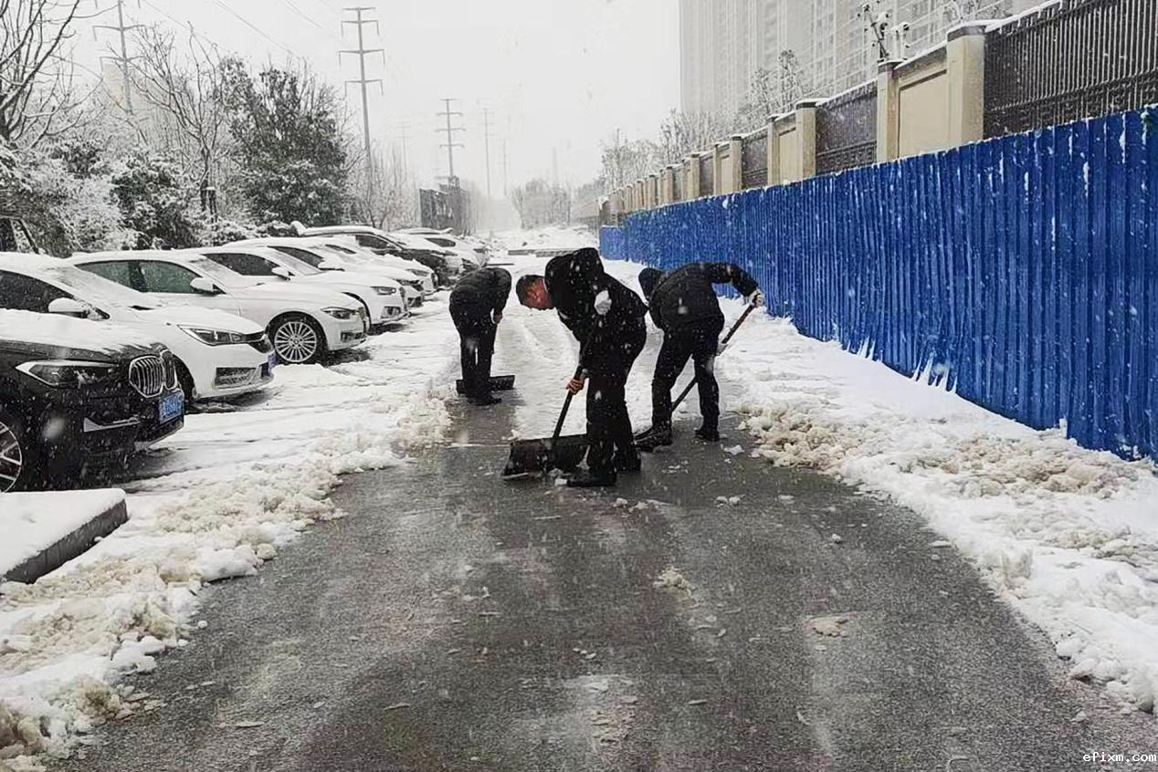 大家不顾雪花扑面,也无惧刺骨寒风,纷纷拿起铁锹、扫帚等除雪工具开始清扫。你看,他们齐心协力,配合默契;你看,他们顶风冒雪,热火朝天。虽然户外的温度很低,但大家清除积雪的热情和团结的力量让这个飘雪的寒冬变得格外温暖。经过一整天的奋战,各项目对小区入口、主干道等重点工作区域的积雪进行了及时有效的清扫,确保了道路的畅通。