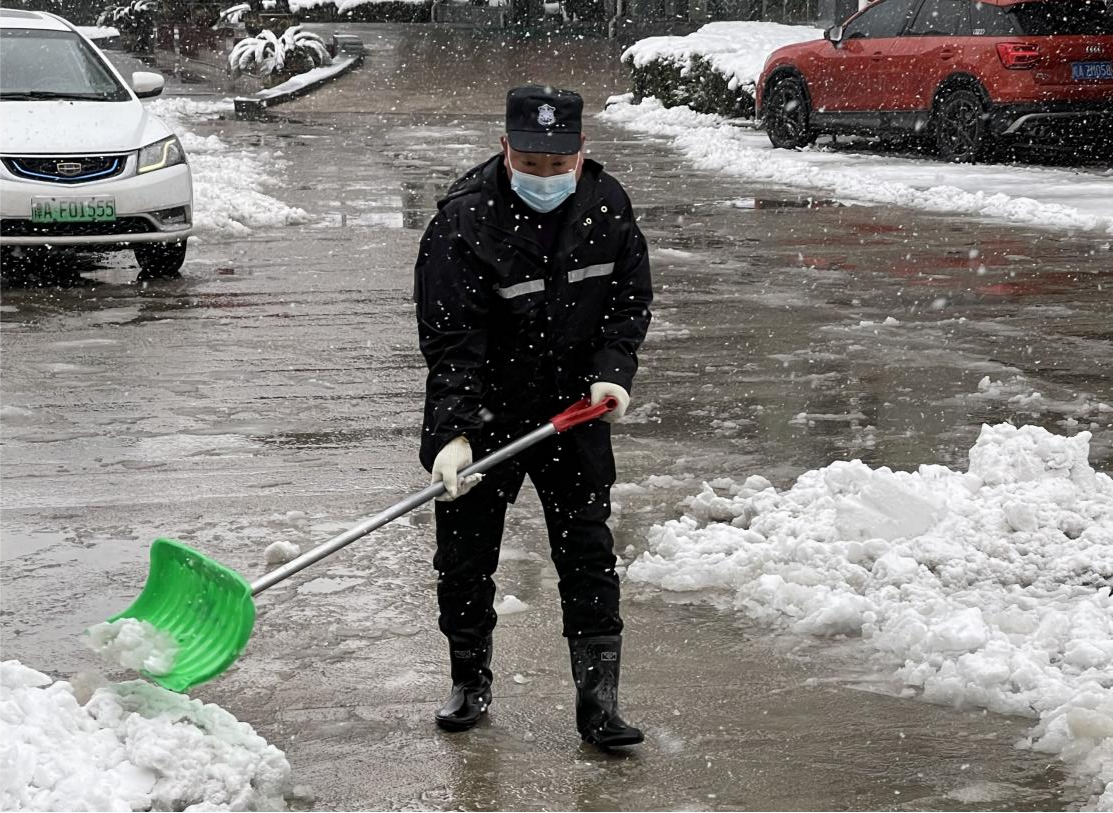 2月7日上午,伴随着春天的脚步,迟到的瑞雪,为初春合肥增添几分秀色,整个城市玉树琼枝,银装素裹。雪景很美,降雪在给大家带来惊喜的同时,也给群众的出行带来安全隐患。按照上级有关部门的部署,安徽合安保安服务有限公司党支部组织全体员工全力以赴深入社区,齐心协力打响铲雪除冰攻坚战。