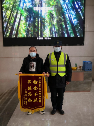 青秀城赵德翔春节期间捡到笔记本电脑一台交还业主,获业主锦旗感谢!