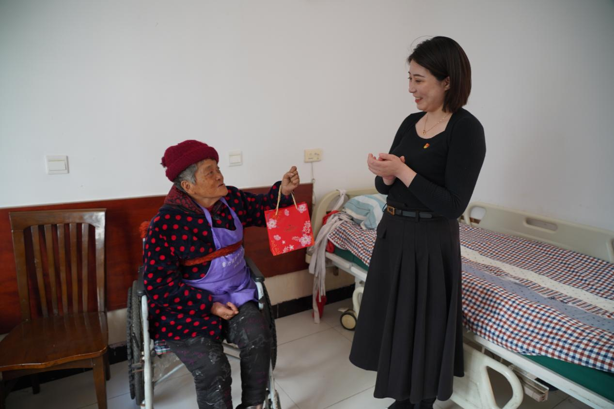 “今天很高兴,在这春暖花开、风和日丽的美丽季节,姑娘们和我们一起共度节日,还带来了米、油、面粉、毛巾等慰问品,不是亲人胜似亲人,心里很温暖,特别感谢她们,为你们点赞。”八十六岁沈寂老人激动地说。