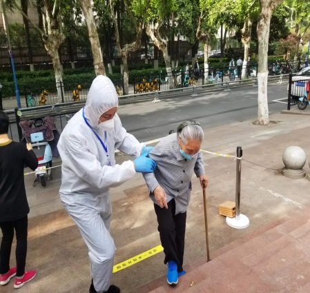 三是主动请战,全力配合逍遥津街道县桥社居全民核酸检测工作。4月22 日早晨7:00中恺公司志愿服务先锋队队长郑华杰同志带领12名志愿者来到核酸检查现场,志愿者们在做好自身防护的前提下,主动融入,对接任务,靠前服务。现场做好秩序引导、体温测量、信息登记,温馨提示参检居民保持一米距离、佩戴好口罩,帮助老人提前做好“二码联查”准备,引导老弱病残孕等特殊群体前往绿色通道进行快速检测,耐心细致的解答现场居民的各种提问,确保核酸检测有秩序、有效率、有温度的进行。核酸检测现场志愿者们不辞辛苦忙碌着,他们是宣传员、引导员,用自己的平凡之力汇成抗疫暖流,他们是抗疫最美逆行者,用责任担当诠释爱心与奉献,他们是疫情防控的志愿蓝,用自己的辛勤付出,践行‘奉献、友爱、互助、进步’的志愿服务精神,守护着市民的健康绿。