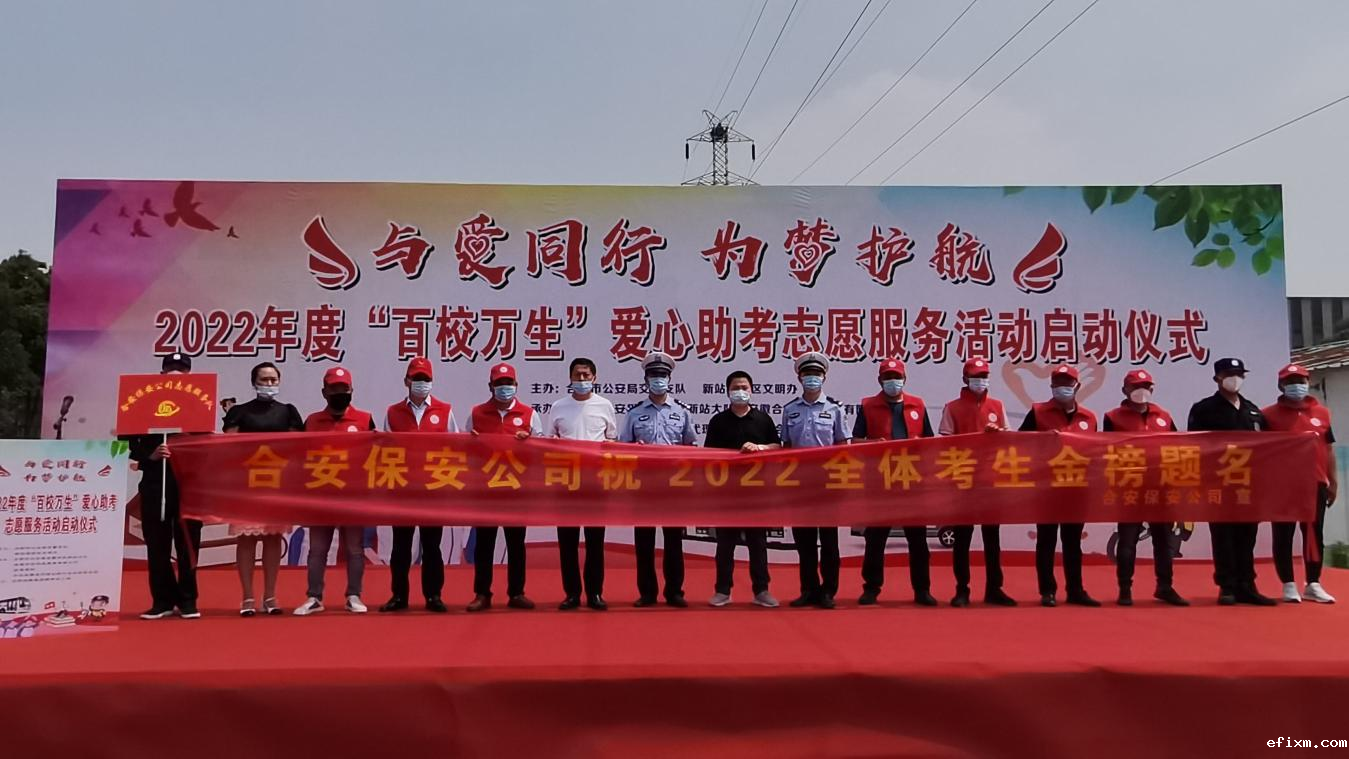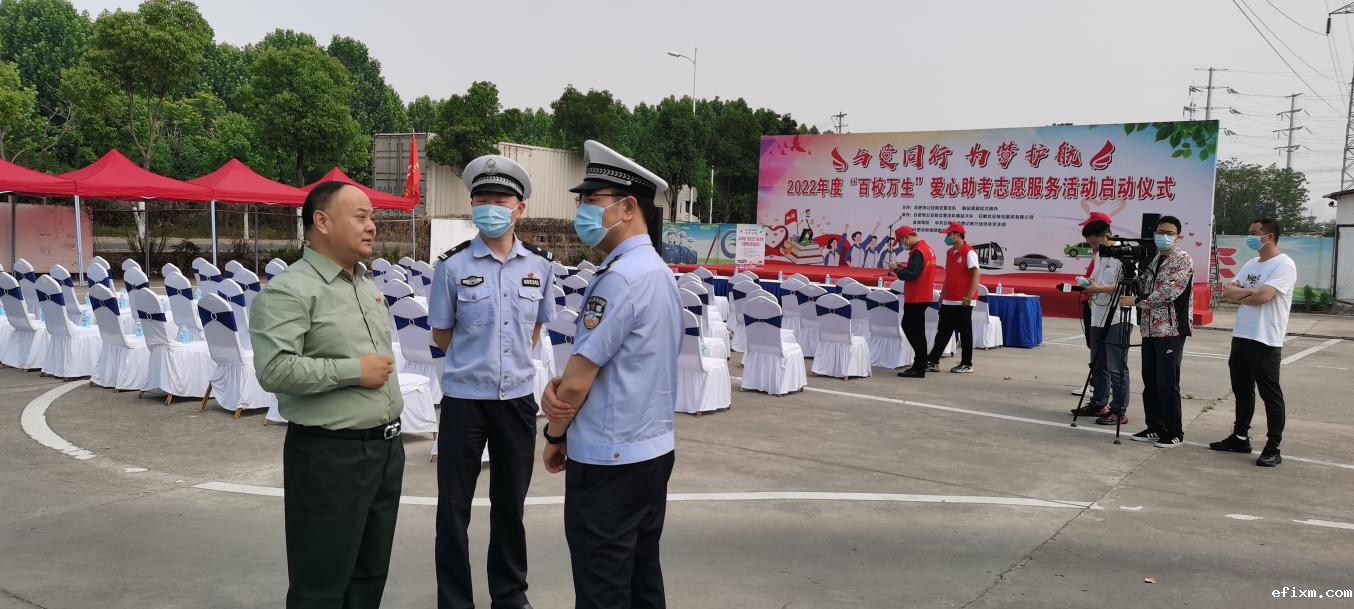 2022年5月27日上午,由新站交警大队主办,安徽合安保安服务有限公司承办的2022年度“百校万生”爱心助考志愿服务活动在新站高新区金海驾校正式启动。