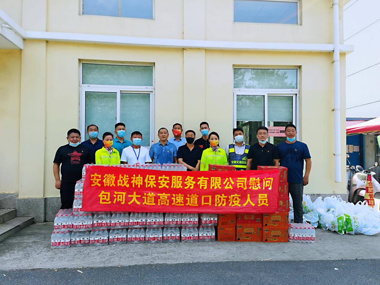 2022年5月14日以来,安徽战神保安服务有限公司在总经理朱全通的带领下,积极响应合肥市包河区文旅局号召,以最快的速度落实疫情防控方案,成立了一支45人的志愿者团队,及时赶到合肥高铁南站及高速道口,支援疫情防控,引导群众扫码并做好现场秩序维护等工作,为战胜疫情、恢复正常秩序贡献了一份力量。 公司志愿者在合肥南站、方兴大道、南淝河路收费站,包河大道高速路口,积极配合上级安排全力抗击疫情,在保质保量完成好安全职责的基础上,严格执行现场的管理要求和防控措施。高速路口是防疫主战场,志愿者们不仅要严格落实各项防控措施,同时还要做好个人防护,他们积极投身疫情防控一线,为人民群众守好门、护好城,筑牢合肥疫情第一关,只为守护好家乡,站好每一个岗位,贡献出自己的力量。他们认真查验双码,耐心向群众宣传防疫政策,一人一车挨个检查,仔细询问是否来自高风险区,有时得不到理解,志愿者们也继续坚持耐心劝解,登记排查,从不叫苦。 6月26日,公司朱全通总经理将载满爱心的矿泉水、泡面和降暑西瓜送到包河大道高速防疫查验点,慰问奋战在高速道口疫情防控一线的工作人员,用实际行动助力打赢疫情防控战。 疫情无情,人间有爱。此次爱心物资捐赠,战神保安用奉献诠释守望相助、共克时艰的社会责任和担当,让防疫查验点一线防控人员看到了战胜疫情的强大社会力量。没有人天生就是英雄,只因被需要,致敬所有的抗疫人员。