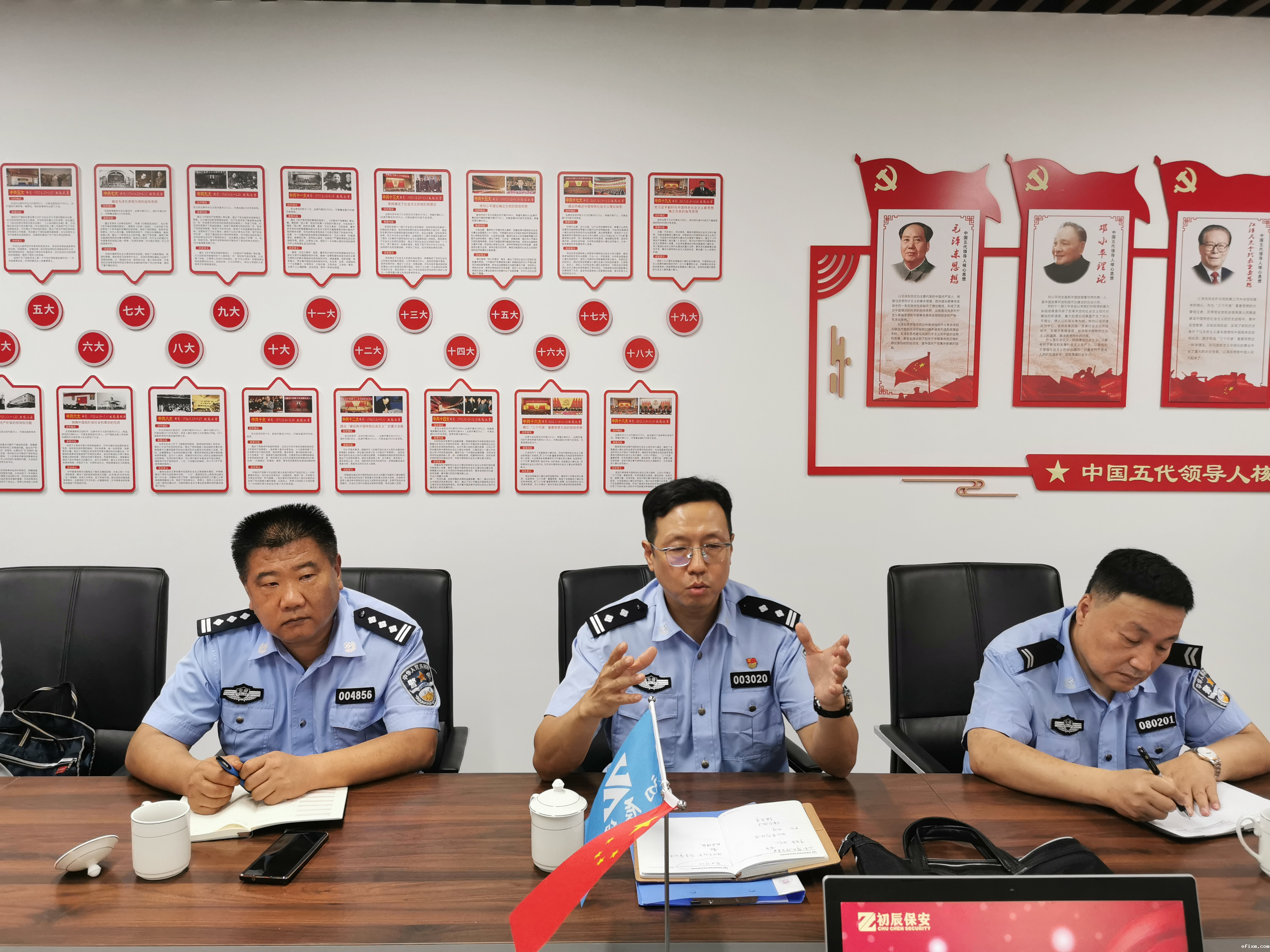 2022年8月2日上午,合肥市公安局治安支队保安管理处保安监管领导阮俐、张巨,瑶海分局治安大队保安监管负责人张义荣一行莅临初辰保安公司,考察调研保安公司规范经营、警保联动及庐州义警推动等情况,公司总经理刘圣峰及部分高管参加座谈。会上,刘圣峰就公司发展成果、规范经营及相关工作落实情况做了系统汇报。