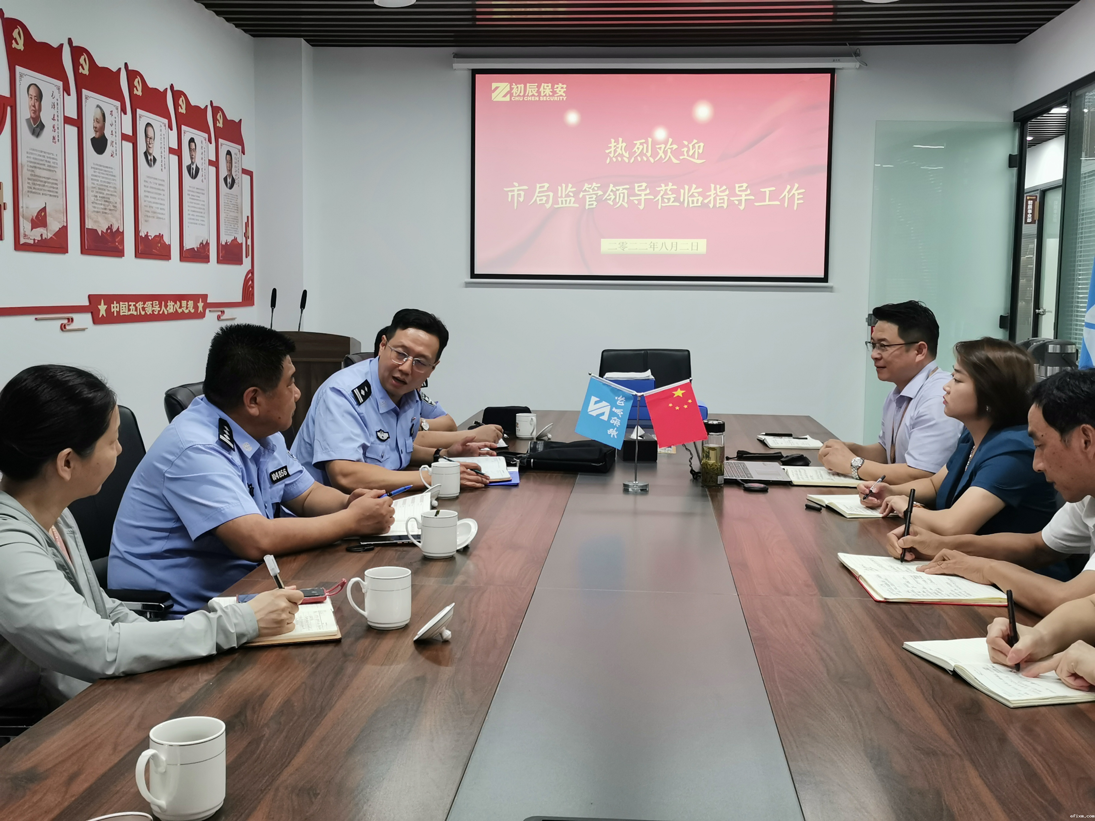 与会领导听取汇报后,对初辰保安公司近年来在响应监管决策、规范经营、队伍管理、企业文化建设等方面取得的成绩给予充分肯定,并针对调研事项与初辰团队进行了深入交流。各位监管领导对初辰保安公司未来的发展作出具体要求,并就初辰公司持续健康发展提出五点建议:一是以需求为导向,正确把握经营发展方向;二是以管理为抓手,强化法人治理结构;三是以安全为重点,合理规避经营风险;四是追求效益增长,主动承担社会责任;五是坚持以人为本,保障员工合法权益。