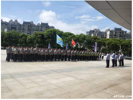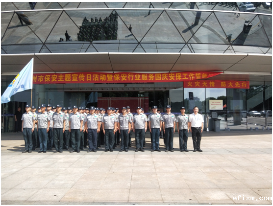 7月24日上午, 惠州市保安主题宣传日活动暨保安行业服务国庆安保工作誓师仪式在惠州会展中心举行,参加誓师仪式的有市公安局治安支队政委许先茂等相关职能部门的主要领导和全市保安队员代表,共300余人。广东鑫诺安保安服务有限公司率部分保安队员参加了誓师仪式。