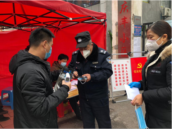 除派驻杏林街道的安保安队伍外,庐泰保安公司驻步行街特色街区大队70名街区巡管队员自疫情开始后,全员投入工作岗位,队员根据合肥市疫情防控应急指挥部第7号公告的精神对步行街街区进行全面封锁,在保留的8个出入口中,街区队员实行轮班值守制度,设立防控宣传点,负责对道口进出人员进行管理,对所有进出人员进行登记,并进行体温检测,发放出入证。除对涉及的居民以外,队员对街区内1200余户经营商家进行叫停管理,避免人员聚集。