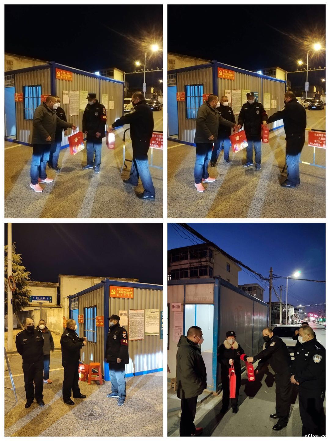 2月20日晚,在安信公司谢勇总经理陪同下,蜀山公安分局治安大队费健、申利同志,对按市防疫指挥部指令,在蜀山区十里店社区安信公司责任区7个(三无小区)执勤点的保安员在岗在位、履职尽责情况进行慰问督察并给奋战在抗疫一线的保安员送上慰问品,对保安员舍小家为大家的无私奉献精神表示感谢,同时要求安信公司做好所有队员后勤保障工作。
