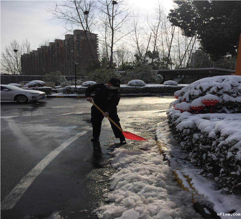 1月26日和2月15日,合肥连下两场大雪,加上倒春寒的连日阴雨,我们的保安队员不畏严寒,不畏孤单,不惧恐慌,不怕艰苦。在风雨中,在纷飞大雪中,在寒夜人静时,在封闭的值班室门口,在午夜的灯光下,处处留有他们的身影。