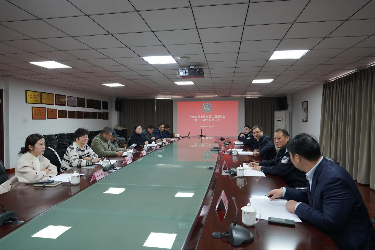2023年12月27日上午合肥市保安协会第二届理事会第十三次会长办公会在合肥保安集团五楼会议室召开。合肥市公安局保安监管领导、协会班子成员参加会议。