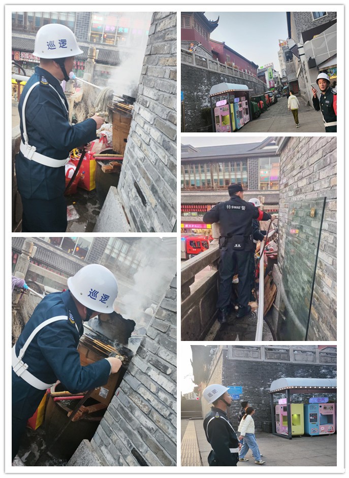 2024年3月11日下午,安徽警鹰保安服务有限公司李军、刘成、沈高杰三人按照公安机关和市保安协会的指令,在人流如梭、热闹非凡的街道及周边开展巡逻任务。三人在巡逻过程中,敏锐地发现某重点文物单位火情,他们分工明确,分组开展抢救和疏散工作。在没有任何防护措施的前提下,保安员不顾个人安危采用消防水管和灭火器等进行灭火。扑灭完表面起火点后,检查中发现底部还有余火,历时十几分钟,进行二次灭火,最终将火灾及隐患全部排除。