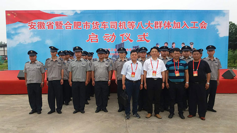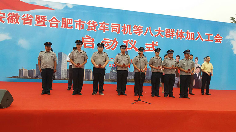 6月2日上午,安徽省暨合肥市推动货车司机等八大群体入会行动启动仪式在合肥市经开区熔安动力厂区广场举行。