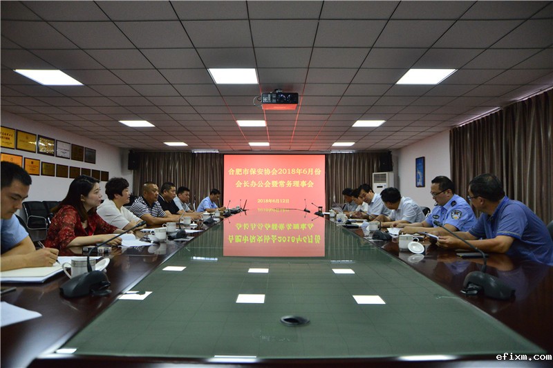 6月12日下午,合肥市保安协会在合肥保安集团5楼会议室召开了2018年第一次常务理事会暨会长办公会,协会会长应长春,秘书长张传林,各位副会长,常务理事及协会监事刘玉斌,秘书处相关人员参加会议。市局保安管理处负责人郑宝凌列席了会议。会议由应长春会长主持。