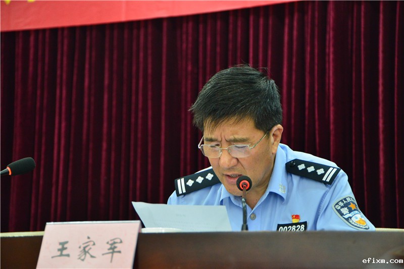 图为市局治安支队党总支委员、副调研员王家军发表讲话