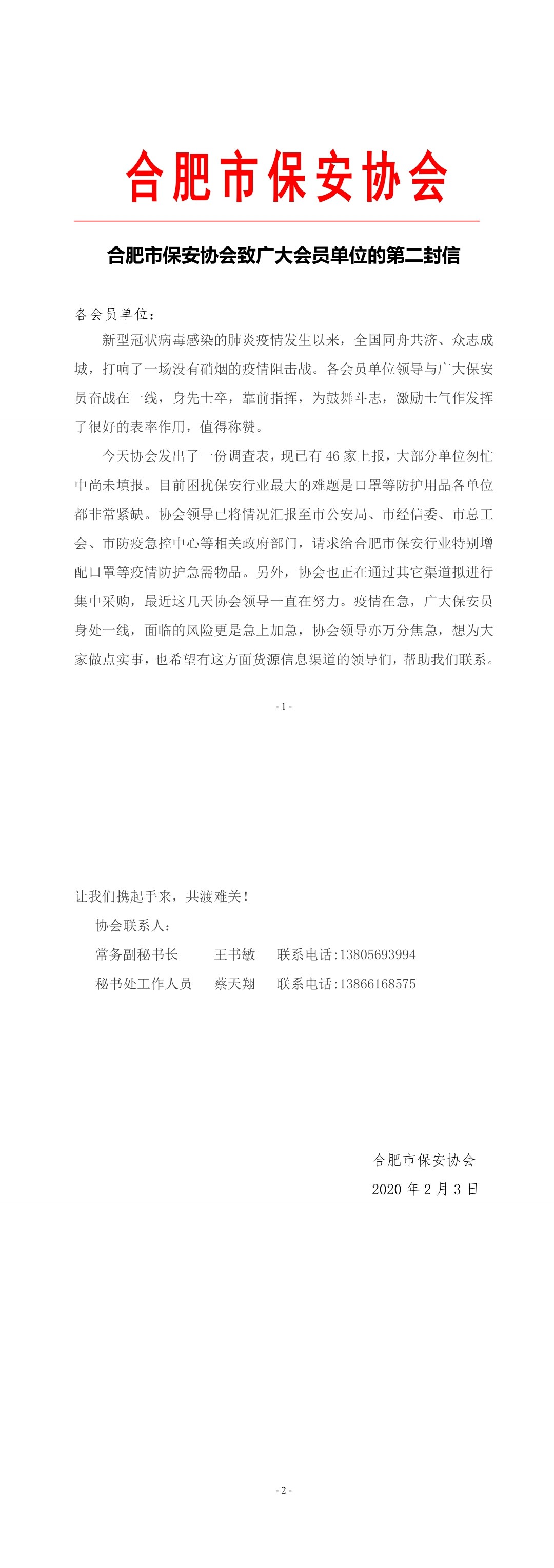 下一篇:合肥市保安协会致广大会员的一封信