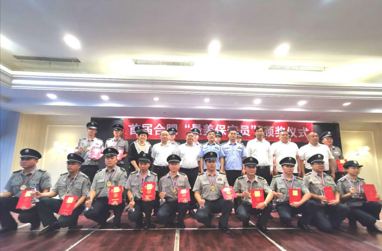 随后,20名首届合肥“最美保安员”整齐列队进入会场,并向全体与会人员致敬,王家军委员、刘君处长为他们颁奖,并合影留念。