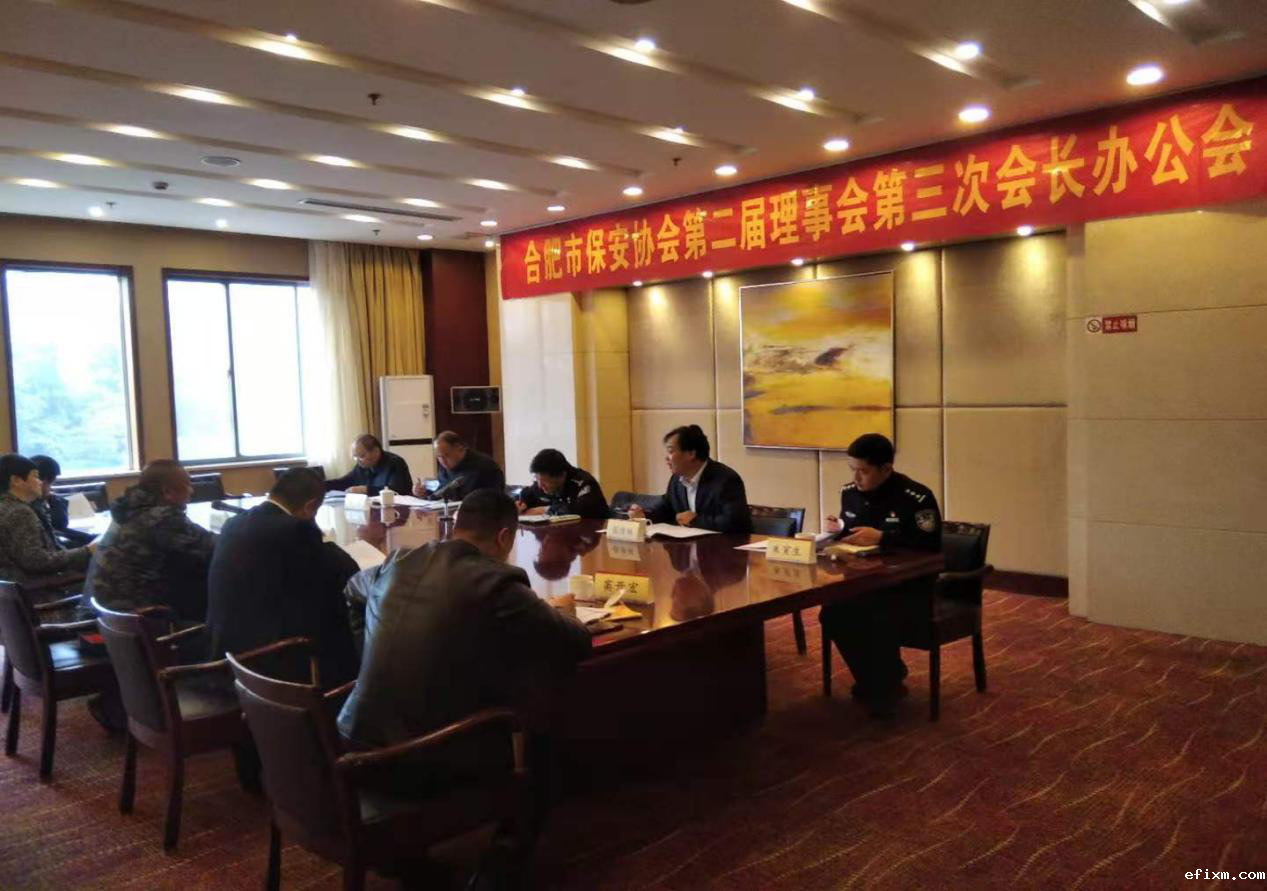 11月20日上午8:30,合肥市保安协会第二届理事会第三次会长办公会在合肥市梅山宾馆NO1会议室召开。合肥市保安协会会长、常务副会长、副会长、监事长单位派员参加会议,合肥市公安局治安支队党总支委员王家军应邀参加会议。会议由合肥市保安协会常务副会长、秘书长张传林主持。