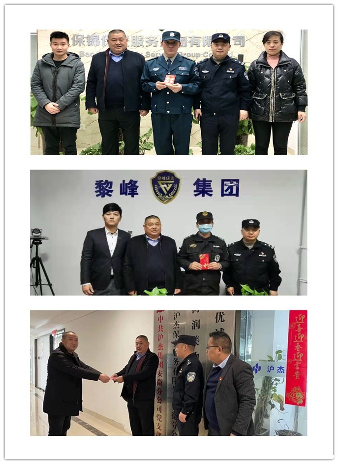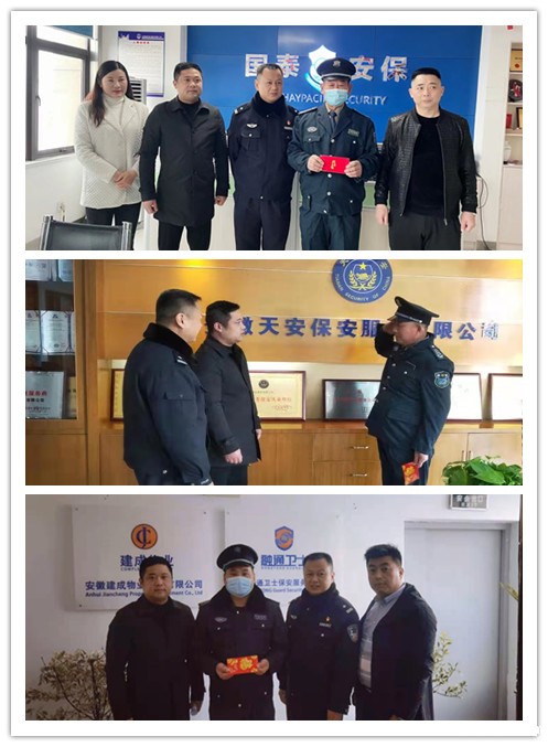 在高新治安大队保安监管朱警官的见证下,协会副会长、安徽振升保安服务集团有限公司董事长窦开宏一起为高新区三家保安企业三名特困保安员进行了慰问