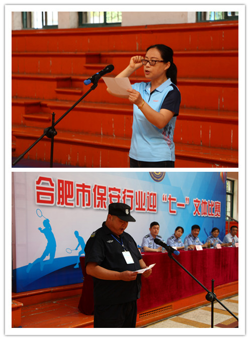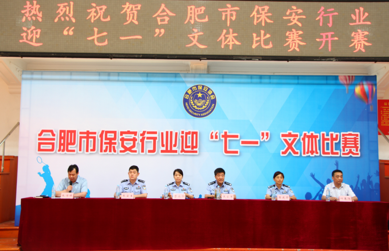 为丰富广大保安从业人员文化生活,增进保安行业之间互动交流,增强团队协作能力和集体荣誉感,合肥市保安协会于6月22日上午,在安徽省体育中心举办了迎“七一”保安员文体比赛,合肥市公安局保安监管领导,分局治安大队保安监管领导,以及合肥市保安协会领导班子成员出席活动。开幕式由合肥市保安协会常务副会长、秘书长张传林主持。