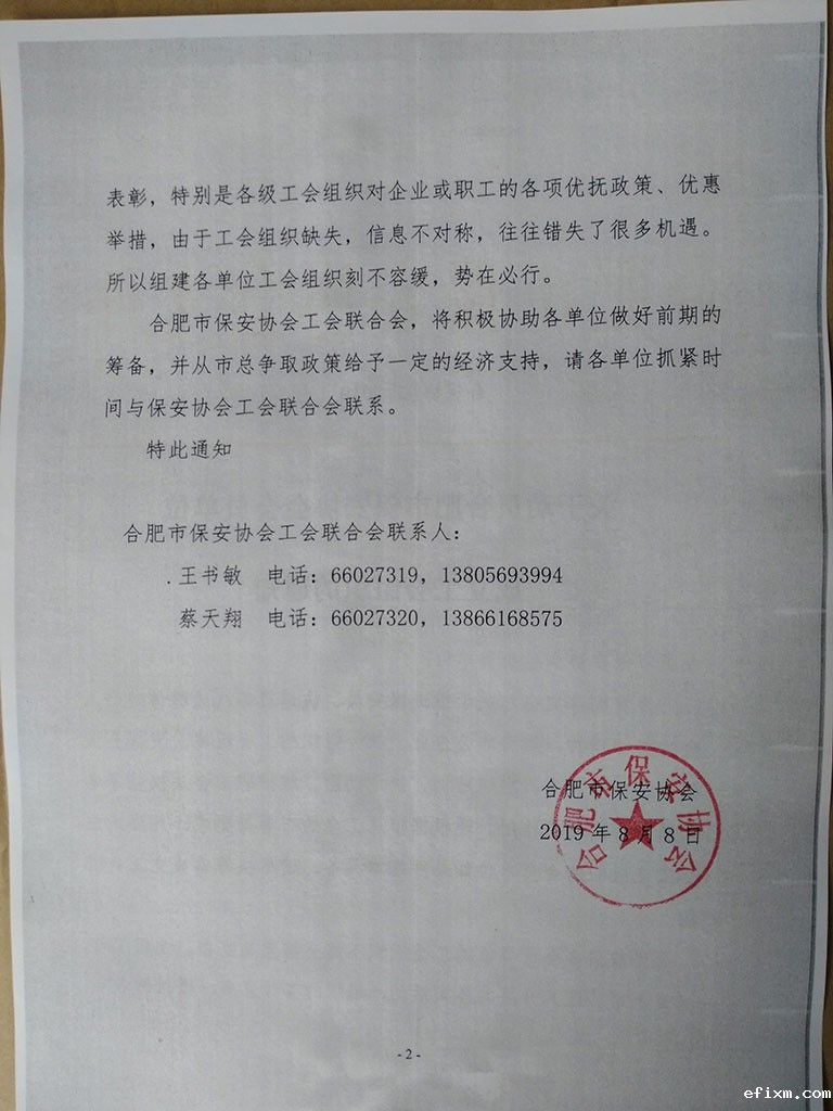 关于动员合肥市保安协会会员单位成立工会组织的通知